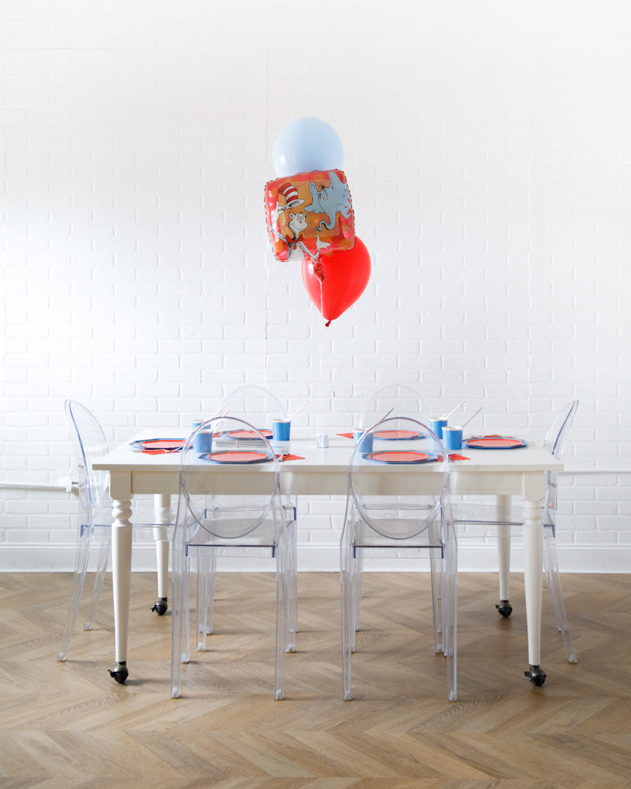 Our 11in balloon and foil centerpiece bouquet is a versatile choice that can dress up any tabletop. Includes a Dr. Suess happy birthday foil balloon, perfect for a kids Dr. Suess themed birthday party. Use for celebrations at home, party room, venue or restaurant.
