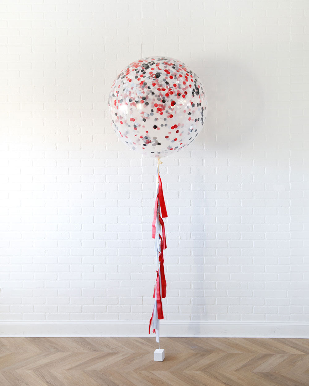 Balloon - clear Confetti - Red, White, Black, Light Blue, Silver