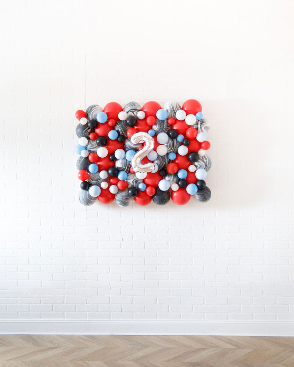 Our Dr. Seuss themed balloon backdrop is a perfect way to celebrate a little one's birthday! This 30" by 40" balloon wall includes an air-filled silver number balloon and air filled colorful balloons designed for a Dr. Suess themed party. Use it behind for your sweets table decoration or a photo backdrop. Place above sweet's table or on photo backdrop wall. Complete the look with matching balloon bouquets.