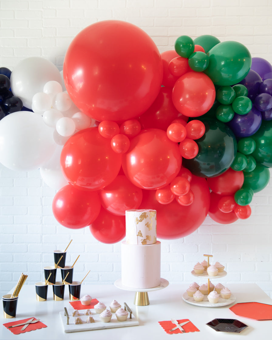 Spread some cheer with this eye-catching balloon garland. A great way to celebrate an important occasion, this air-filled 3ft or 6ft balloon backdrop piece can be installed above a sweets table or on a wall for a photo op. Complete the look with giant balloons or balloon columns from this Avengers collection.