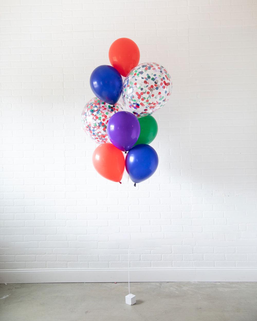 Bring fun to your Avengers party with our popular confetti bouquet. This helium-filled balloon bouquet includes bright balloons and matching confetti to add fun to any sweets table or backdrop.