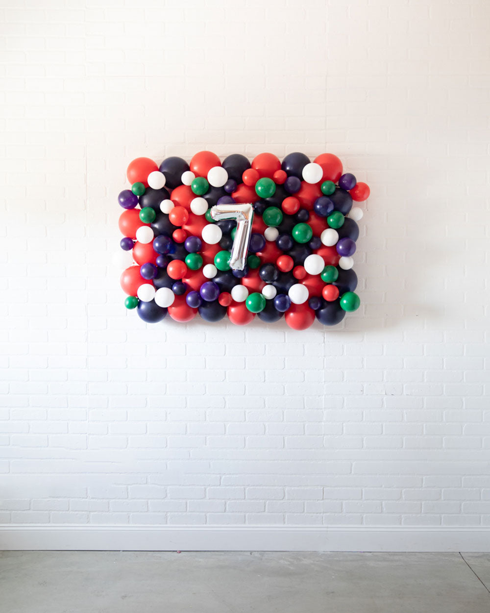 Our Avengers themed balloon backdrop is a perfect way to celebrate a little boys birthday! This 30" by 40" balloon wall includes an air-filled silver number balloon and air filled colorful balloons designed for a Avengers themed party. Use it behind for your sweets table decoration or a photo backdrop. Place above sweet's table or on photo backdrop wall. Complete the look with matching balloon bouquets.