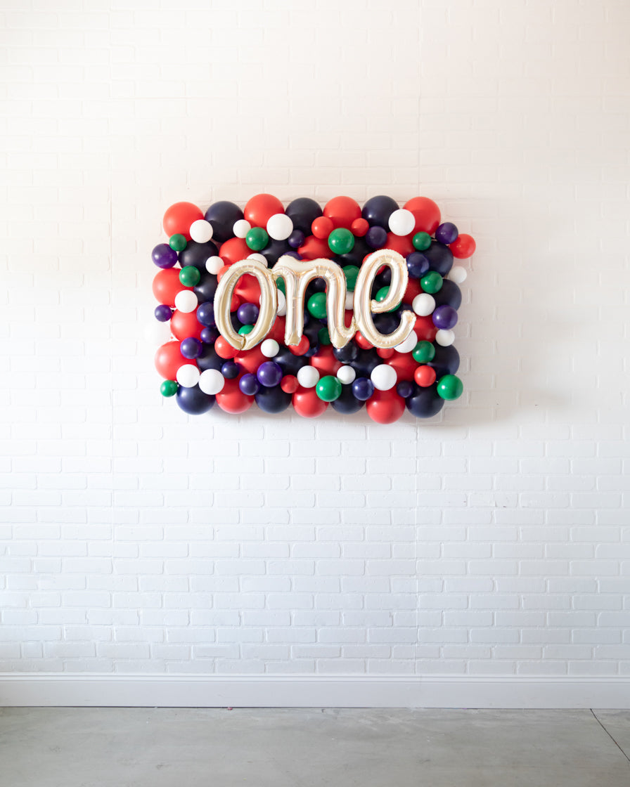 Our Avengers balloon backdrop is a perfect way to celebrate a kids birthday! This 30" by 40" balloon wall includes an air-filled silver one script balloon and air filled colorful balloons designed for a kids Avengers themed party. Use it behind for your sweets table decoration or a photo backdrop. Place above sweet's table or on photo backdrop wall. Complete the look with matching balloon bouquets.