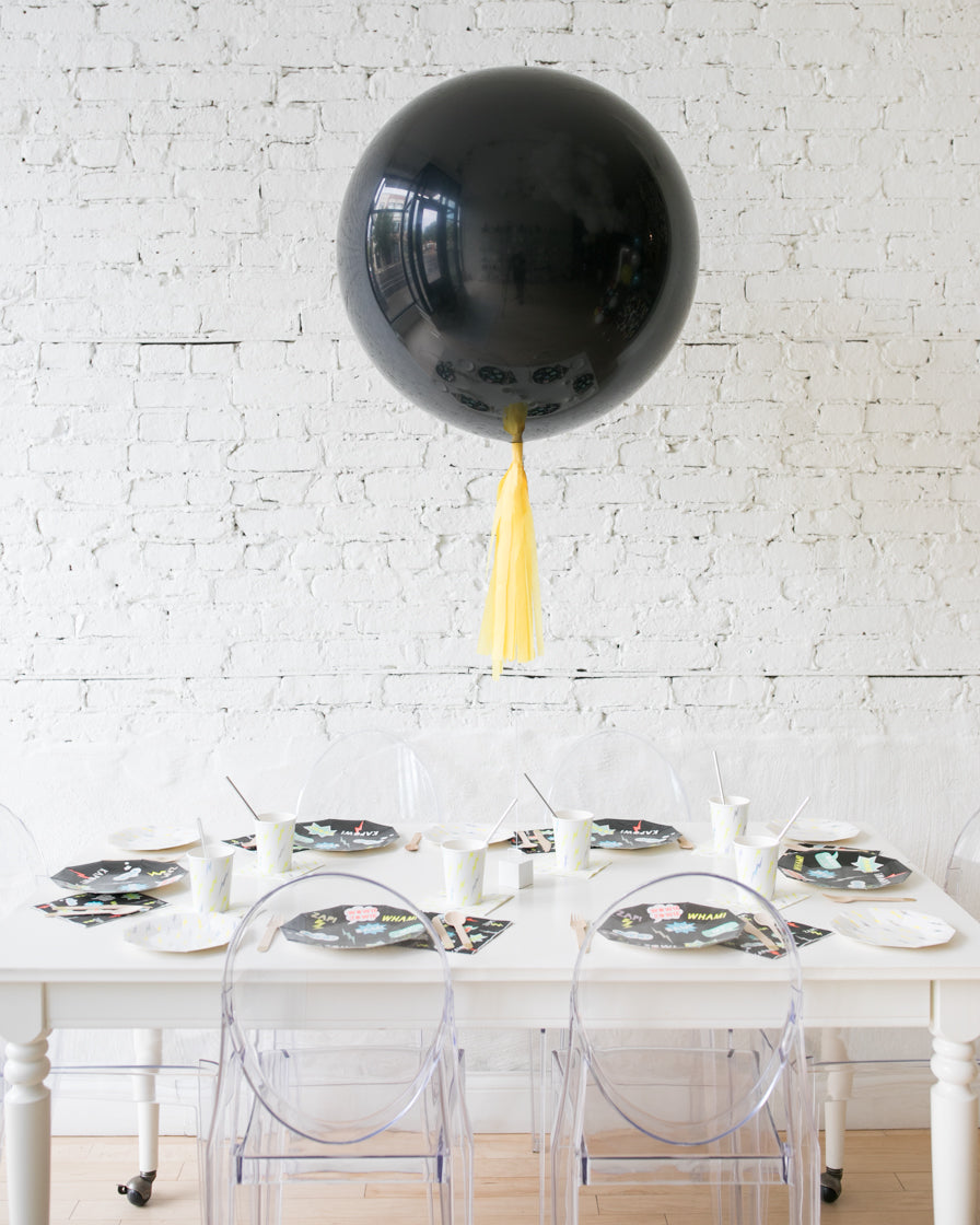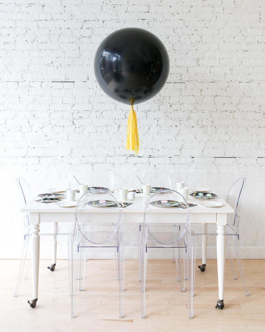 Black Giant Balloon and Yellow Skirt Centerpiece