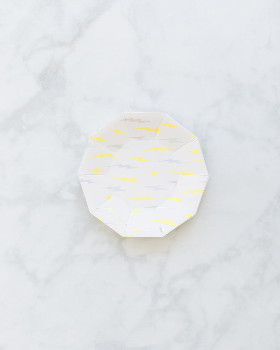 These cool paper plates are brilliant for hungry superheroes. Brightly decorated with lightning bolts embellished with shiny holographic silver foil.