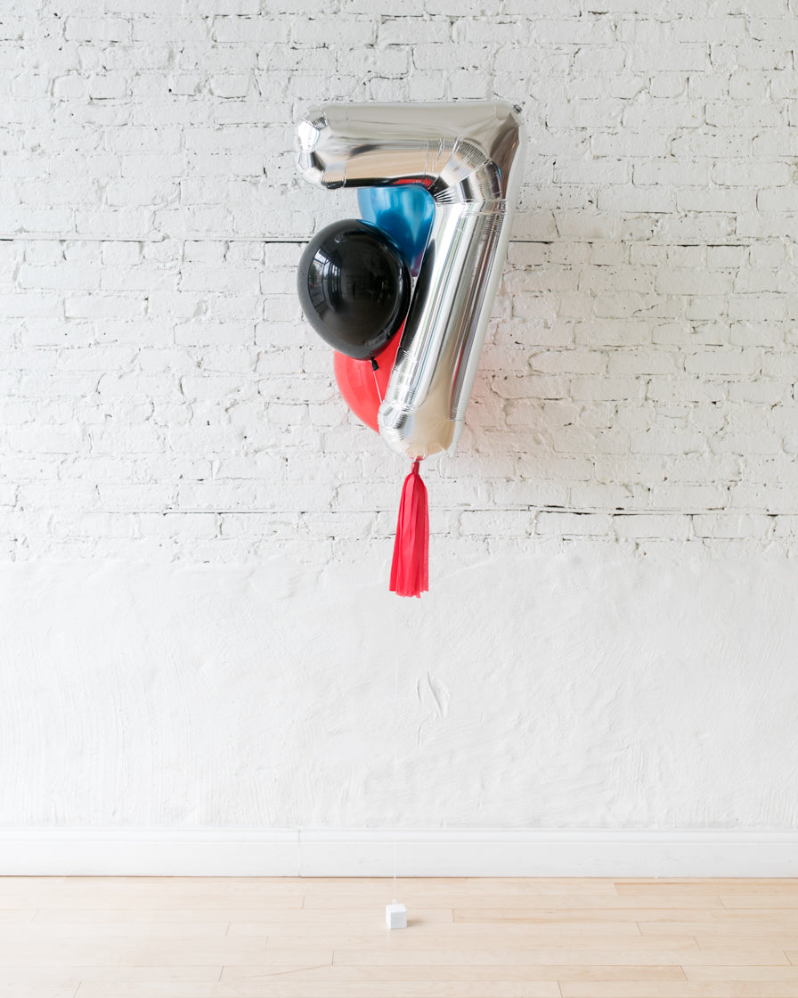 Superhero Theme - Customizable Number and 11in Balloons - bouquet of 4