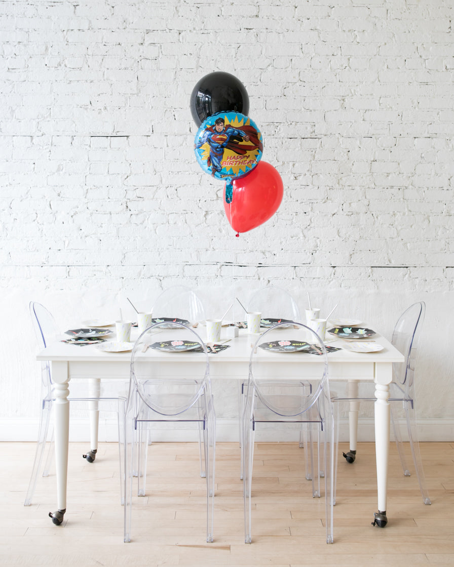 Superman Happy Birthday Foil and 11in Balloons Centerpiece - bouquet of 3