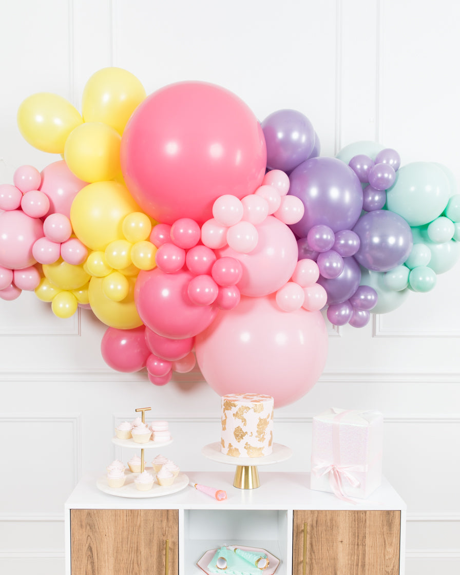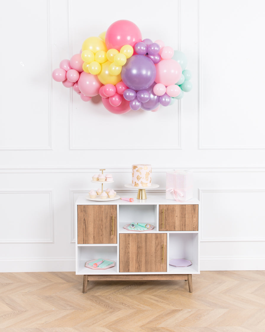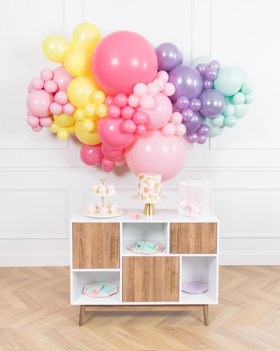 Spread some cheer with this eye-catching balloon garland. A great way to celebrate an important occasion, this air-filled 3ft balloon backdrop piece can be installed above a sweets table or on a wall for a photo op. Complete the look with giant balloons or balloon columns from this sweet treat collection.