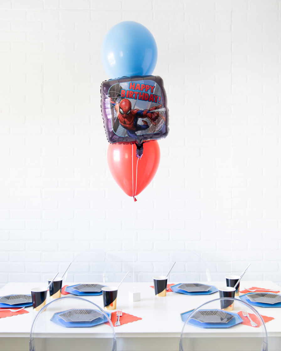 Our 11in balloon and foil centerpiece bouquet is a versatile choice that can dress up any tabletop. Includes a Spiderman happy birthday foil balloon, perfect for a kids Spiderman themed birthday party. Use for celebrations at home, party room, venue or restaurant.
