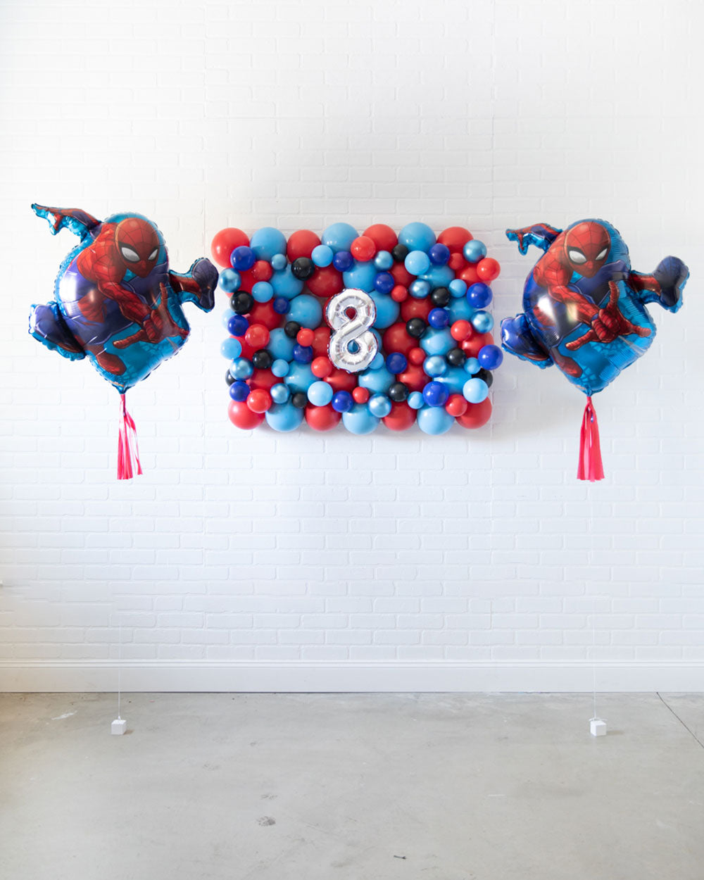 Make the ultimate birthday backdrop with this fun and festive Spiderman inspired backdrop. This set includes a Spiderman mylar, and a colorful balloon wall to create an unforgettable Spiderman themed party.