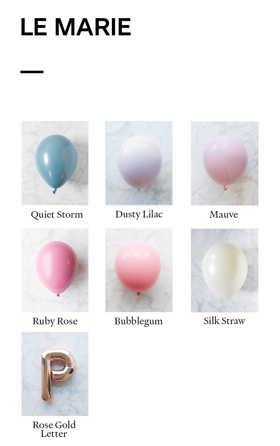 Balloon - quiet storm, dusty lilac, mauve, silk straw, ruby rose, bubblegum