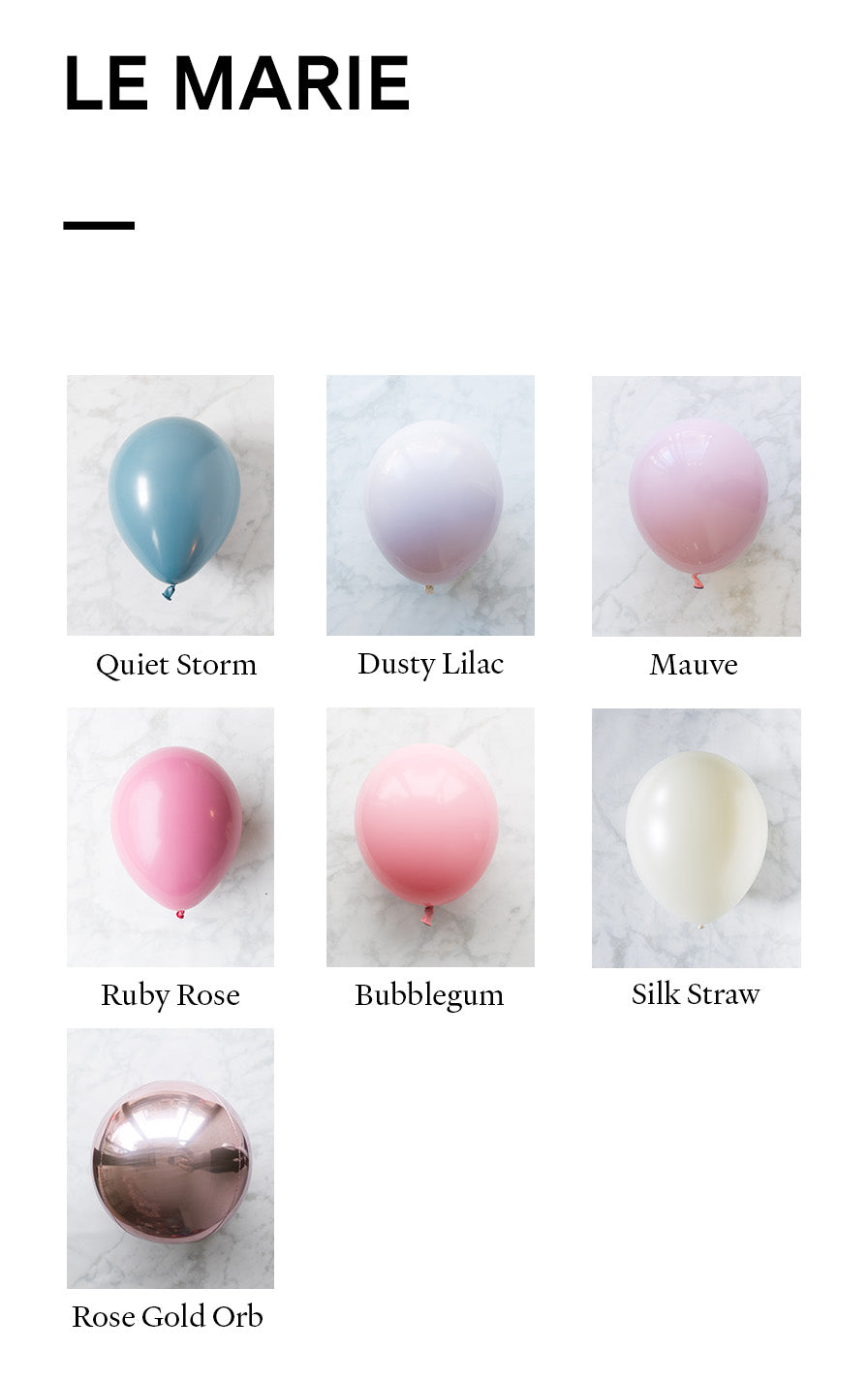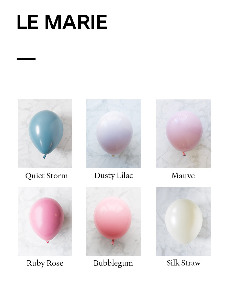 Balloons - quiet storm, dusty lilac, mauve, silk straw, ruby rose, bubblegum