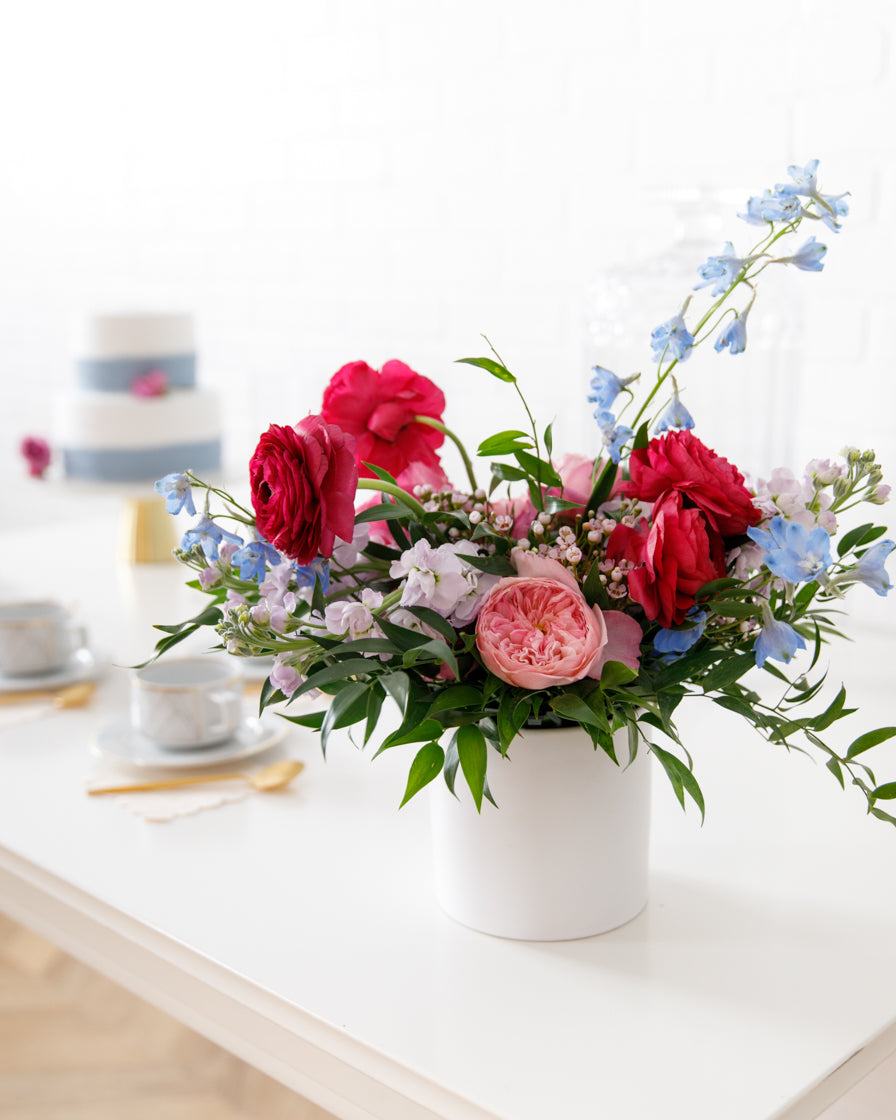 Your table will be one of a kind with our Le Marie inspired shades floral centerpieces! The set includes three stunning arrangements meant to bring your table to life! With fresh garden roses, ranunculi and lisianthus, your guests will be wowed!