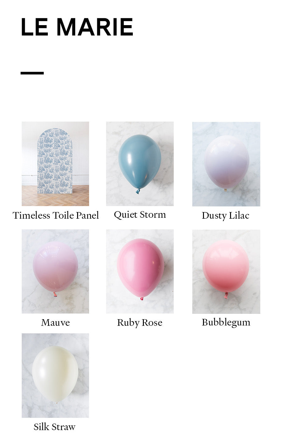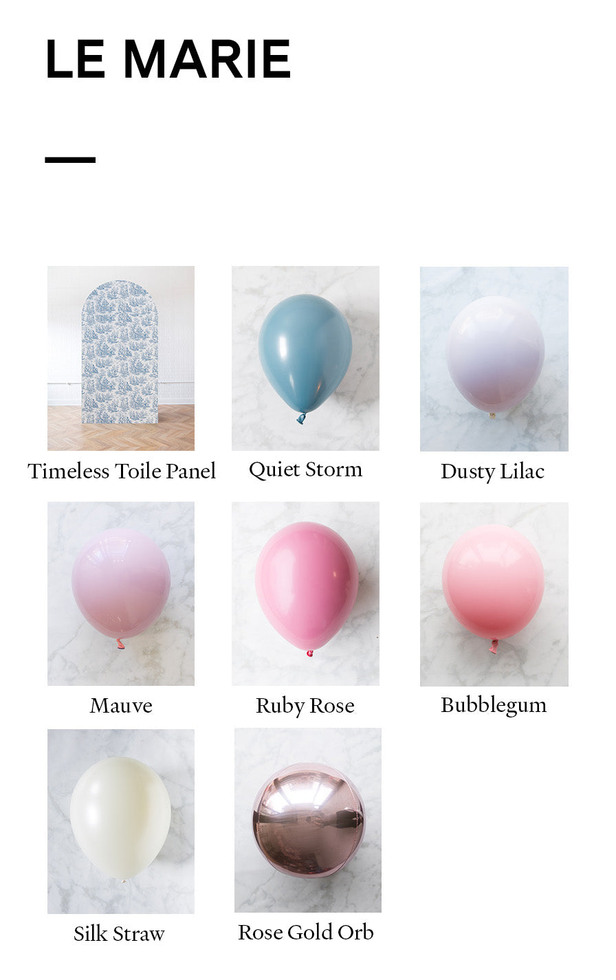 Balloons - quiet storm, dusty lilac, mauve, silk straw, ruby rose, bubblegum