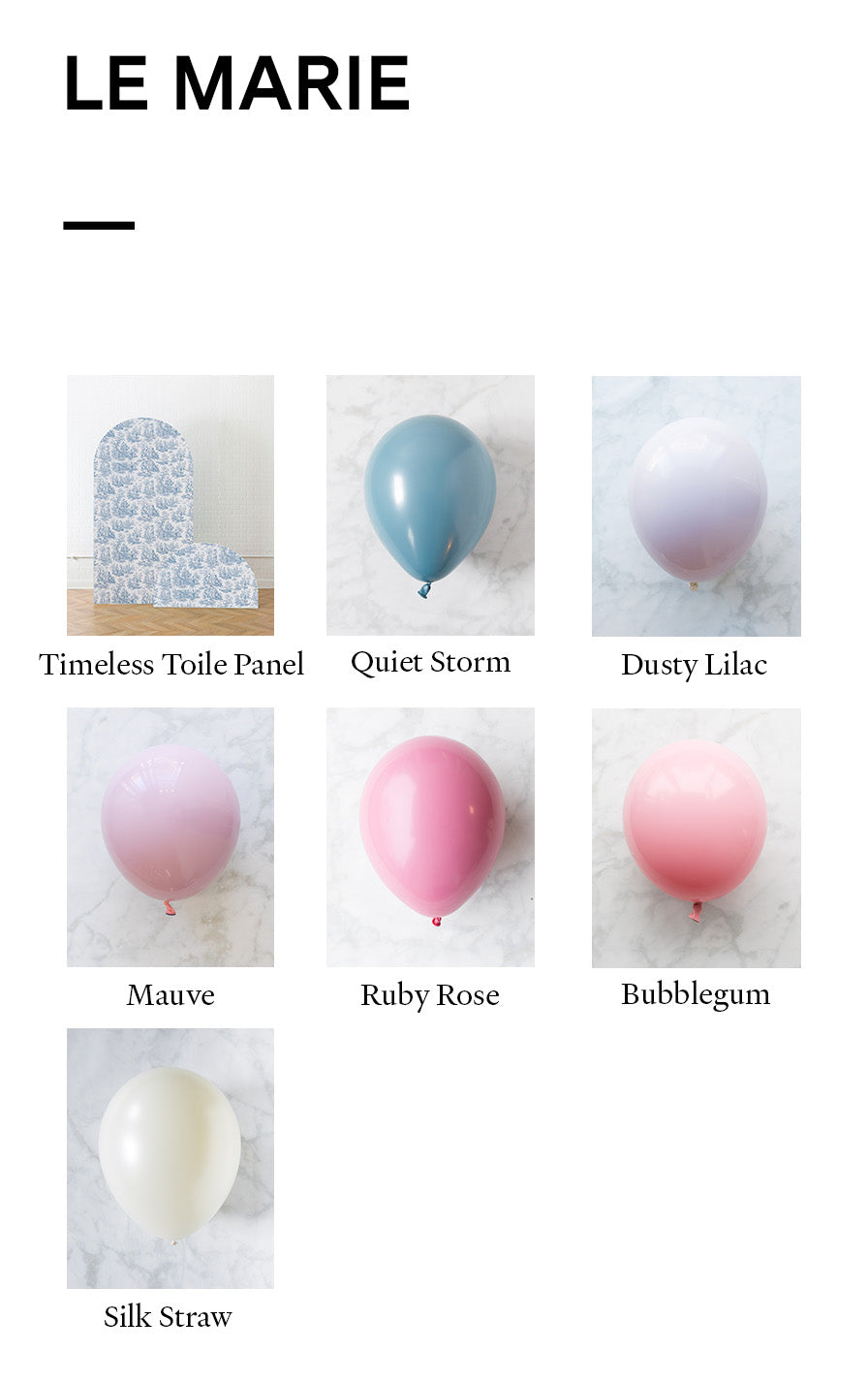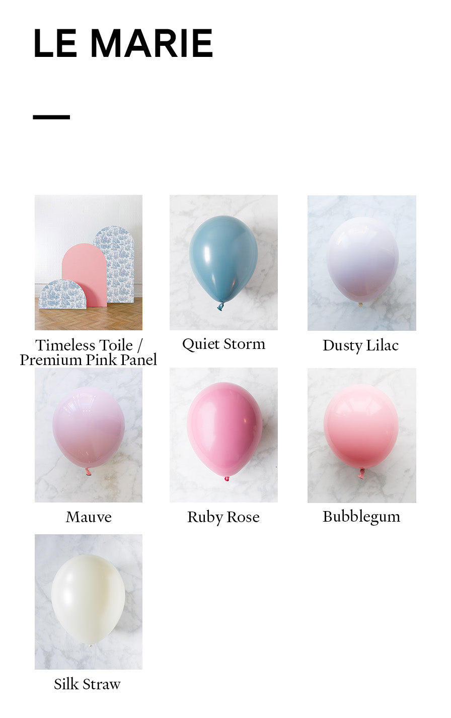 Balloons - quiet storm, dusty lilac, mauve, silk straw, ruby rose, bubblegum