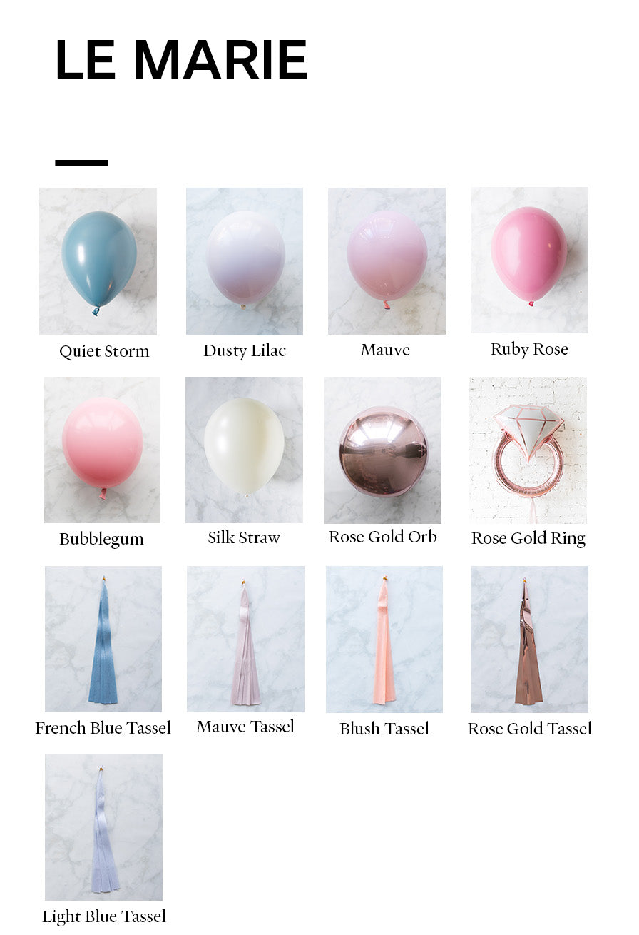 Balloons - quiet storm, dusty lilac, mauve, silk straw, ruby rose, bubblegum