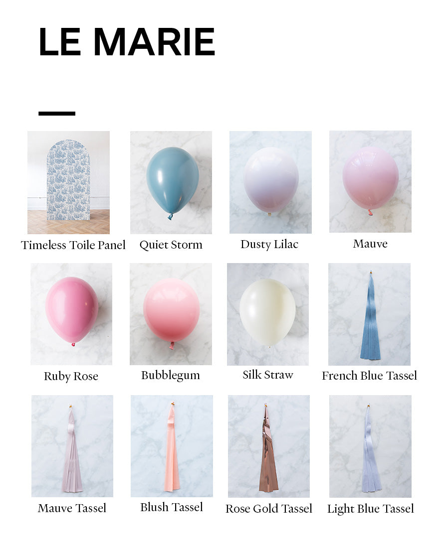 Balloons - quiet storm, dusty lilac, mauve, silk straw, ruby rose, bubblegum