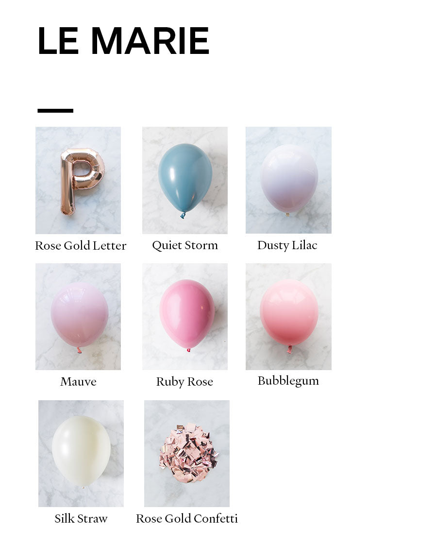 Balloons - quiet storm, dusty lilac, mauve, silk straw, ruby rose, bubblegum