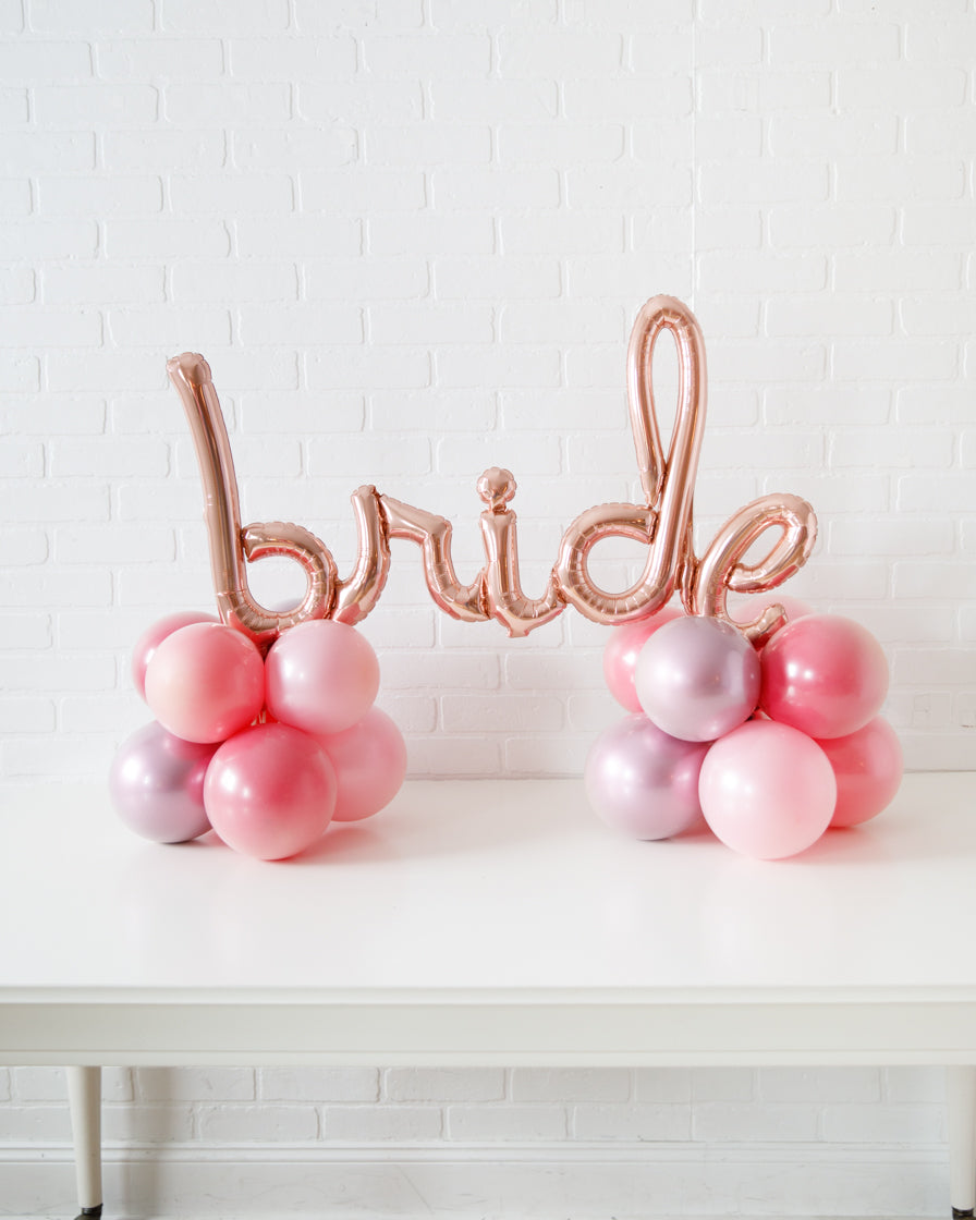 Make the bride to be's bachelorette bold and stylish! This set includes a bride table top, floor balloons and a giant balloon with tassel for a festive bash! This set is Ready-To-Party™. Comes inflated and assembled. Simply unbag and enjoy.