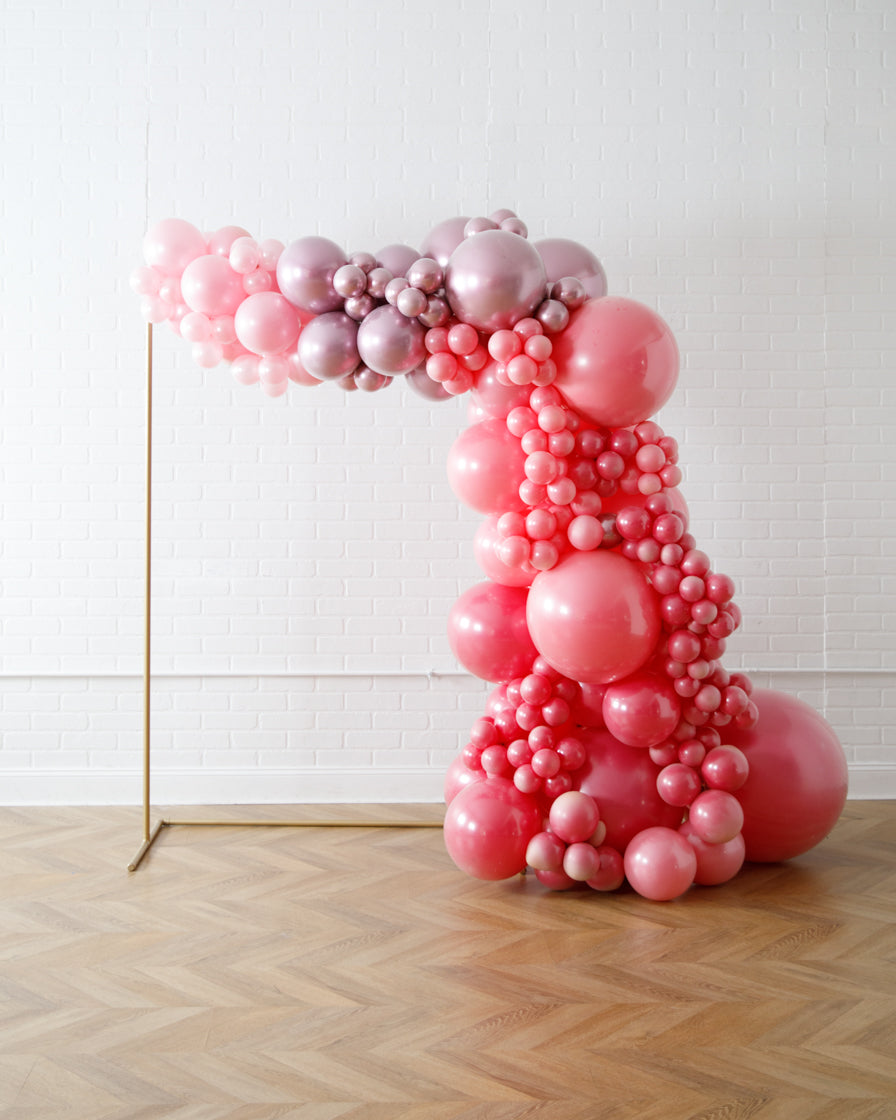 Instantly transform your event with our small frame and balloon garland design! This organic garland drapes around our signature gold frame for a one of a kind look! Bring even more glam to the look with foil accents.