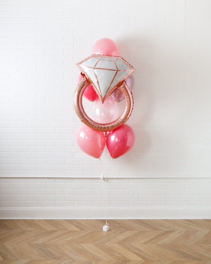 This fun diamond ring bouquet is great as party decor. A versatile choice that can dress up any bachelorette party space. Place near a sweets table or photo backdrop for extra impact.