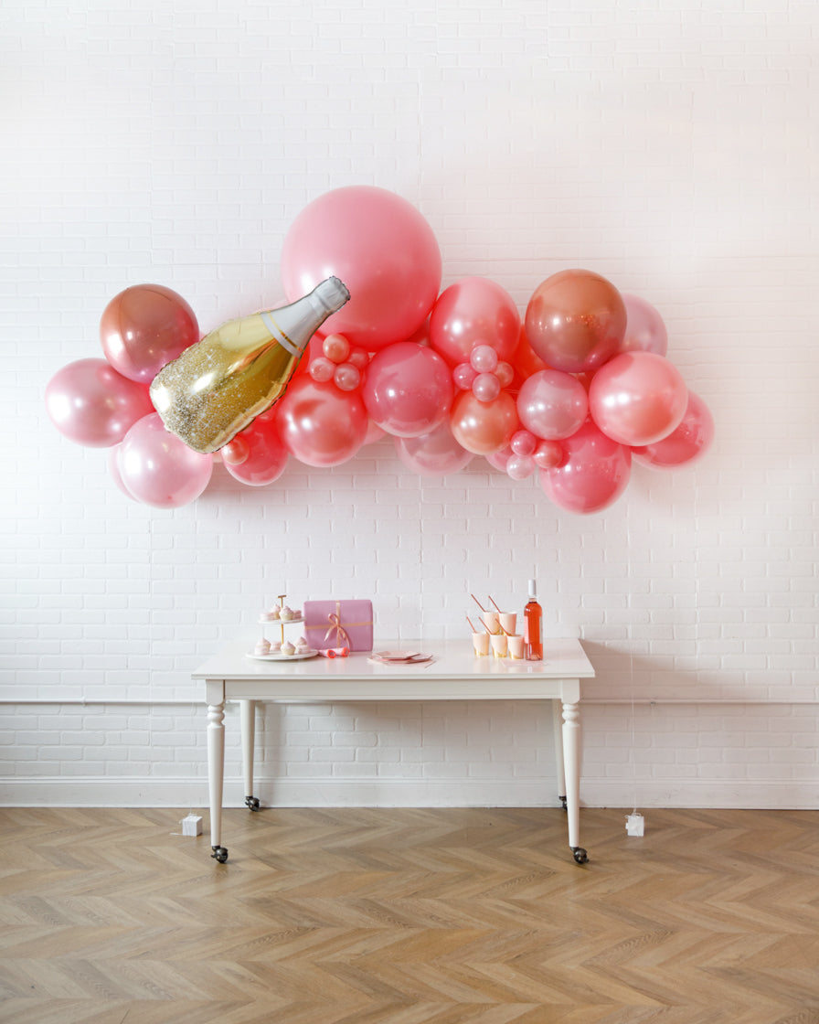 Make a statement with our floating balloon garland, perfect for a bachelorette party! This helium-filled garland includes bold colors, perfect for a rosé inspired celebration.