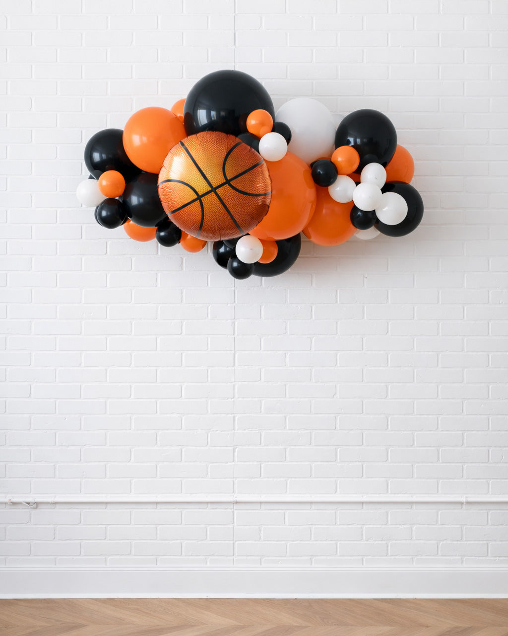Turn up the celebration with our Basketball Balloon Garland. Featuring a basketball foil balloon and balloons in the team colors of your choice, this lively installation adds bold color and game-day energy to any space.