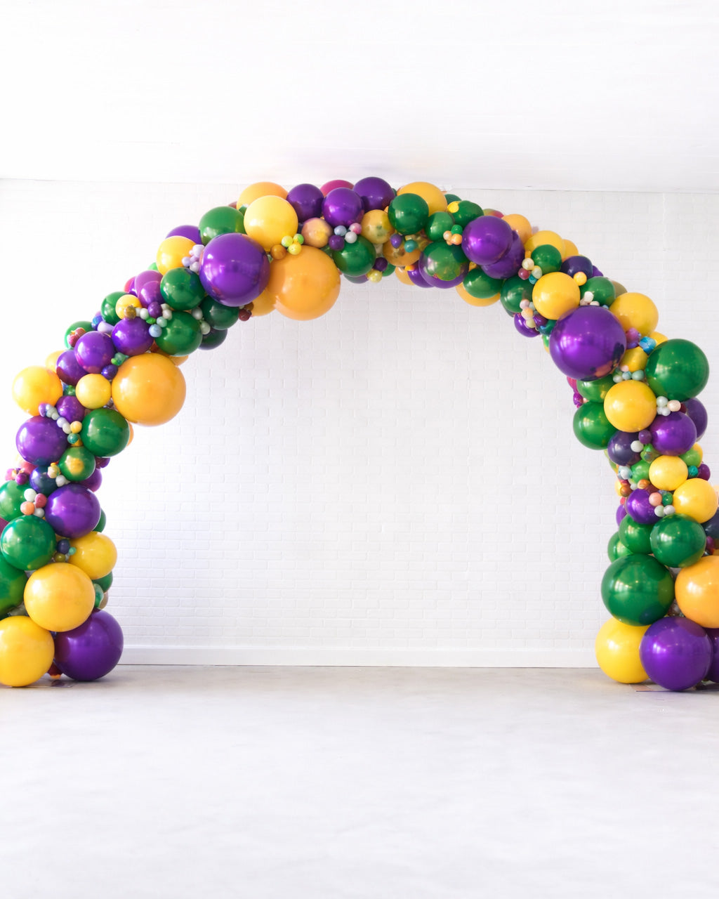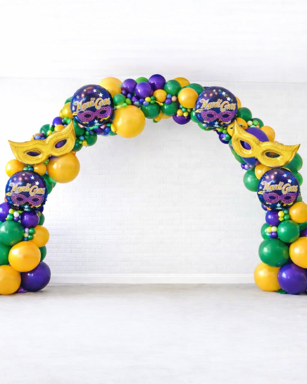 Make a grand entrance with a Mardi Gras balloon arch like no other. Designed in vibrant purple, green, and gold, this show-stopping installation creates the perfect photo backdrop or festive entryway to welcome guests with instant parade-day flair.