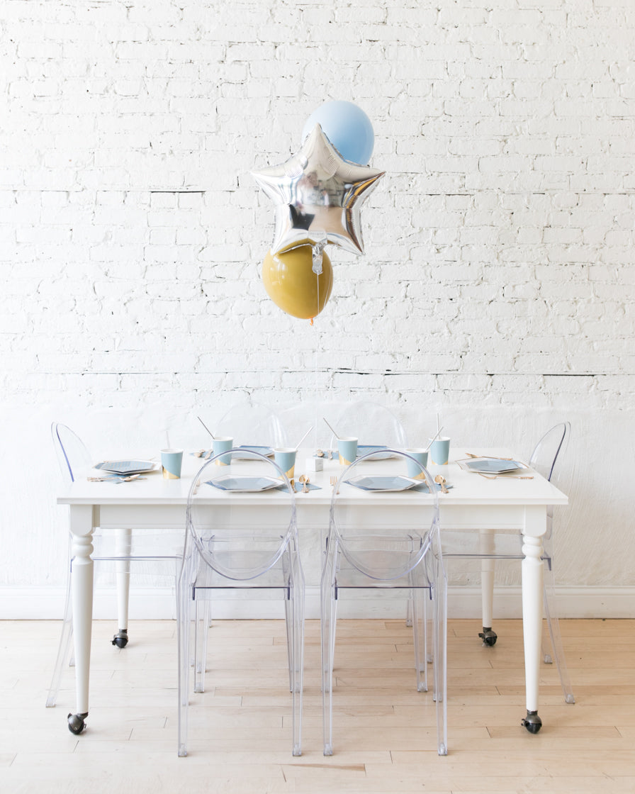 This balloon centerpiece adds a fun touch to your tablescape. Place on dinner table, dessert table, cocktail table or bar cart.