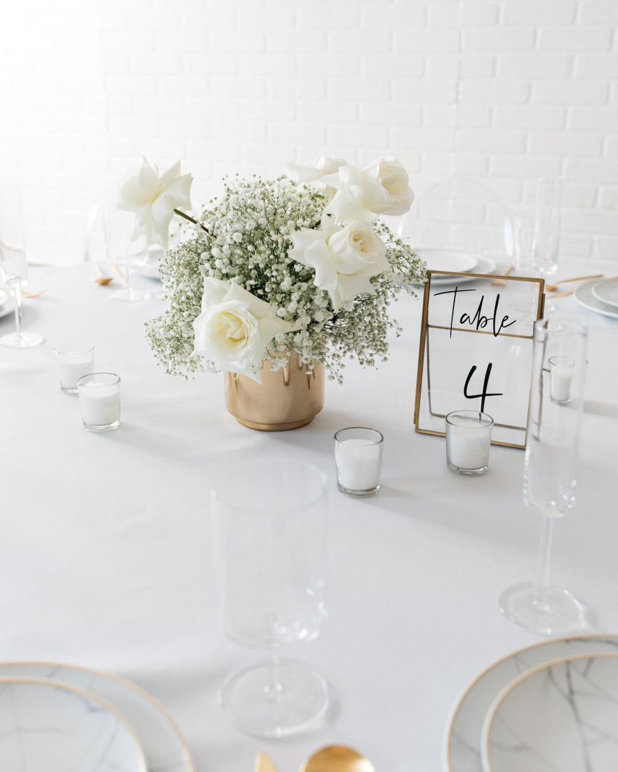 Add a touch of elegance to your celebration with our Gold Framed Acrylic Table Numbers. These 5x7 inch numbers, encased in a gold frame, effortlessly blend style with simplicity. The clear acrylic design ensures they seamlessly complement any centerpiece, making organization a breeze!