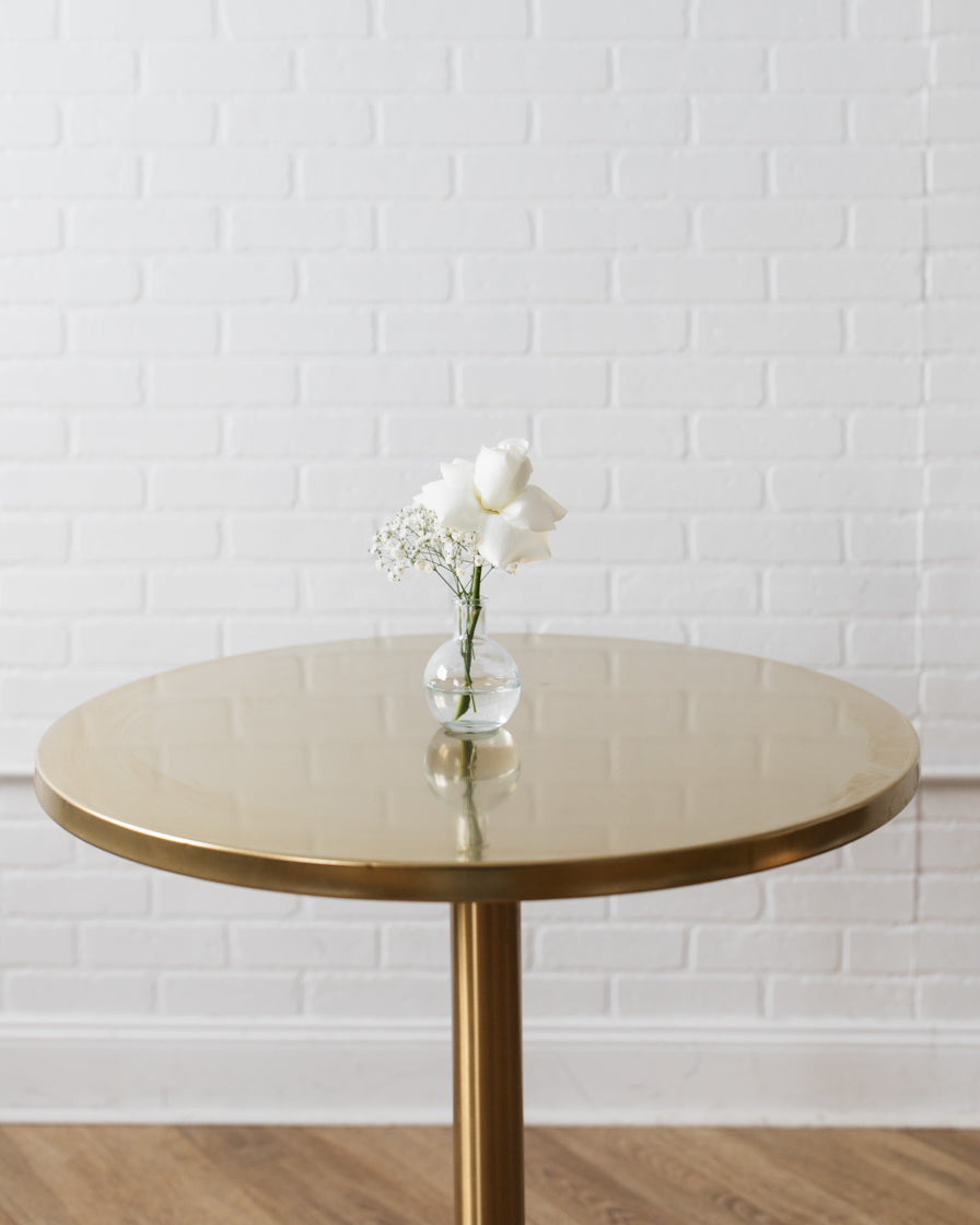 Embrace a modern aesthetic with this arrangement, featuring a sleek mini bud vase adorned with a single rose and delicate baby's breath. Perfect for cocktail tables, it adds a touch of sophistication to any event, blending understated elegance with a contemporary look.