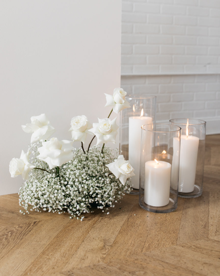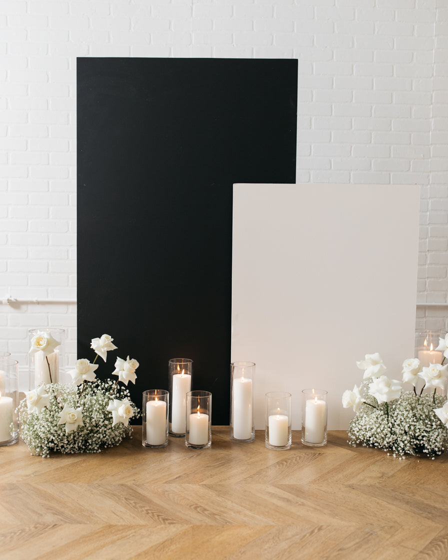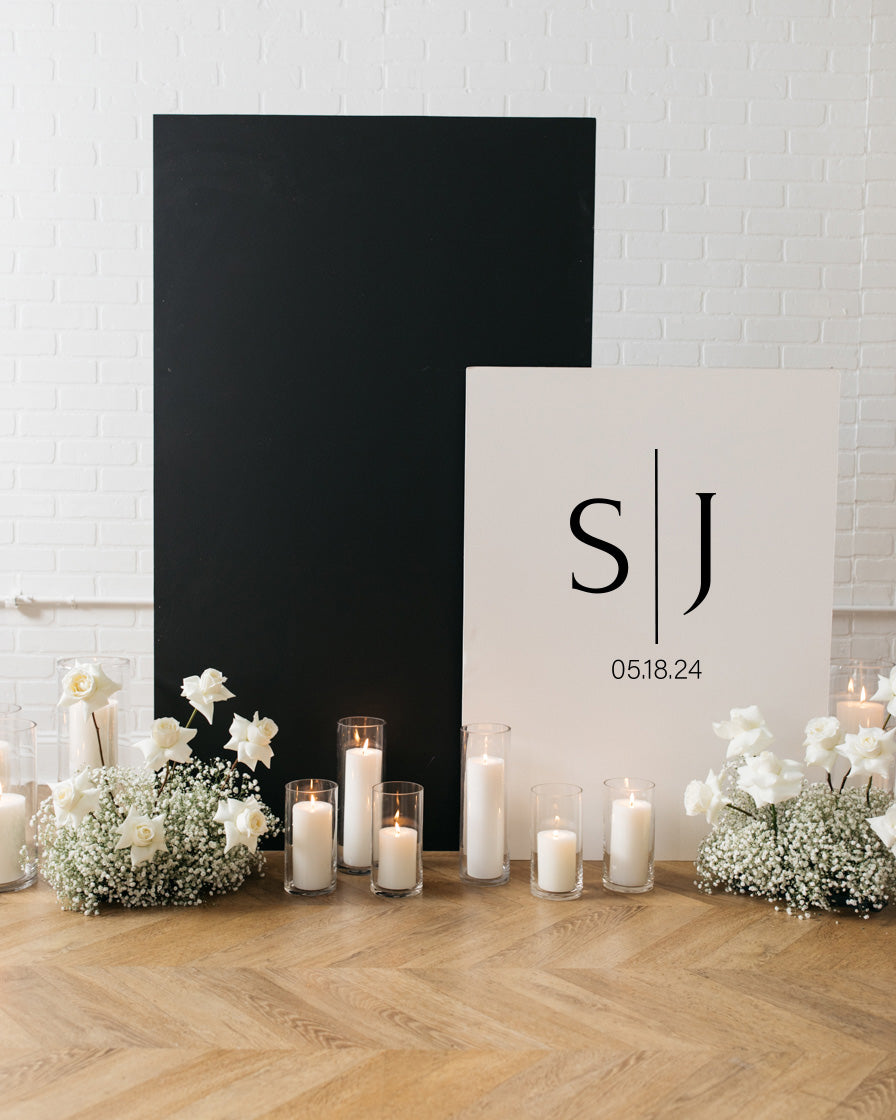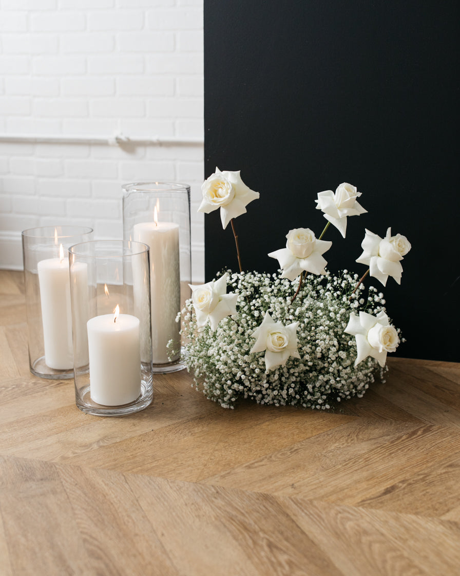 For extra impact and warmth add a set of 12 pillar candle sand customize your celebration with a personalized message, making every moment unforgettable.