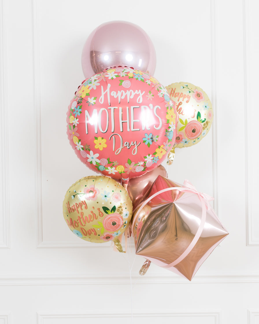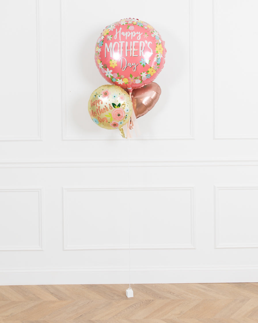 Foil - Large Happy Mother's Day floral wreath circle, small Happy mother's day circle, small rose gold heart
