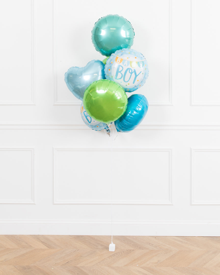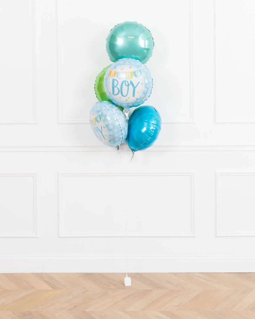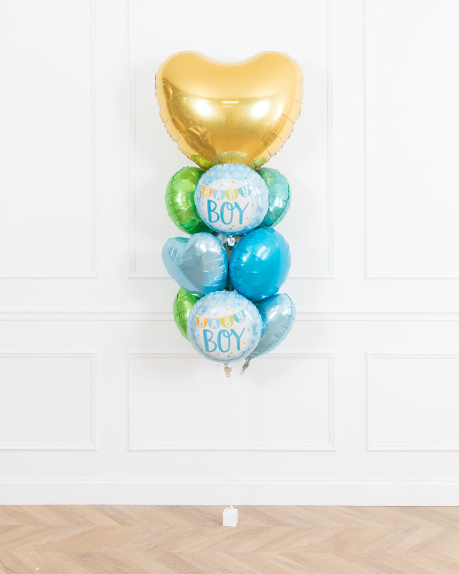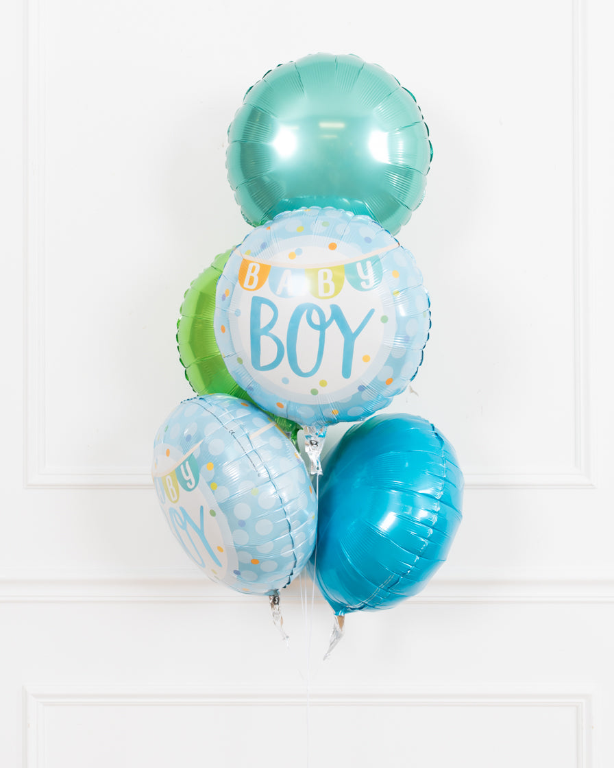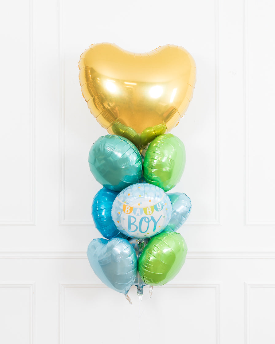 Balloons - teal circe, lime green circle, pastel blue circle, baby boy round, gold heart