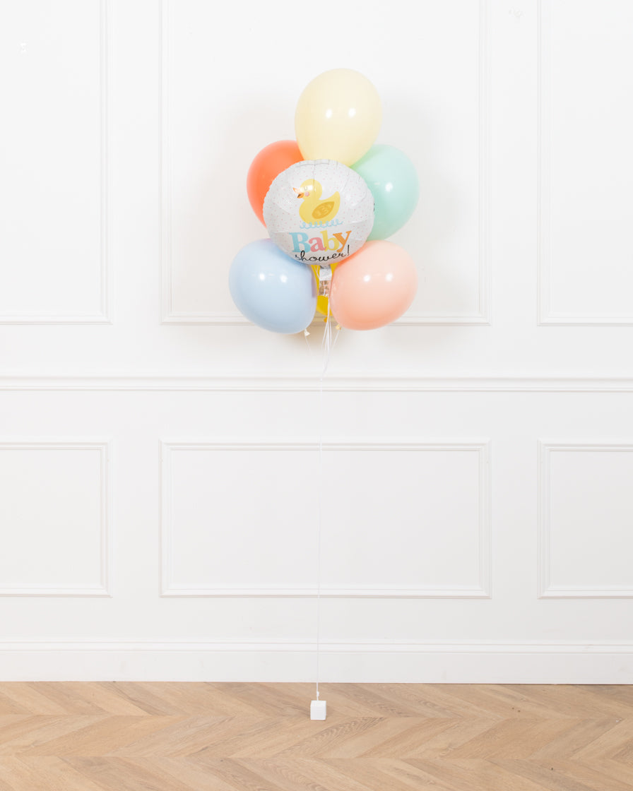 Make an office or staff baby shower memorable with our latex and foil balloon bouquet. This includes colorful helium filled balloons and a baby shower foil balloon for added fun. Make an impact in any office space for the mom to be.