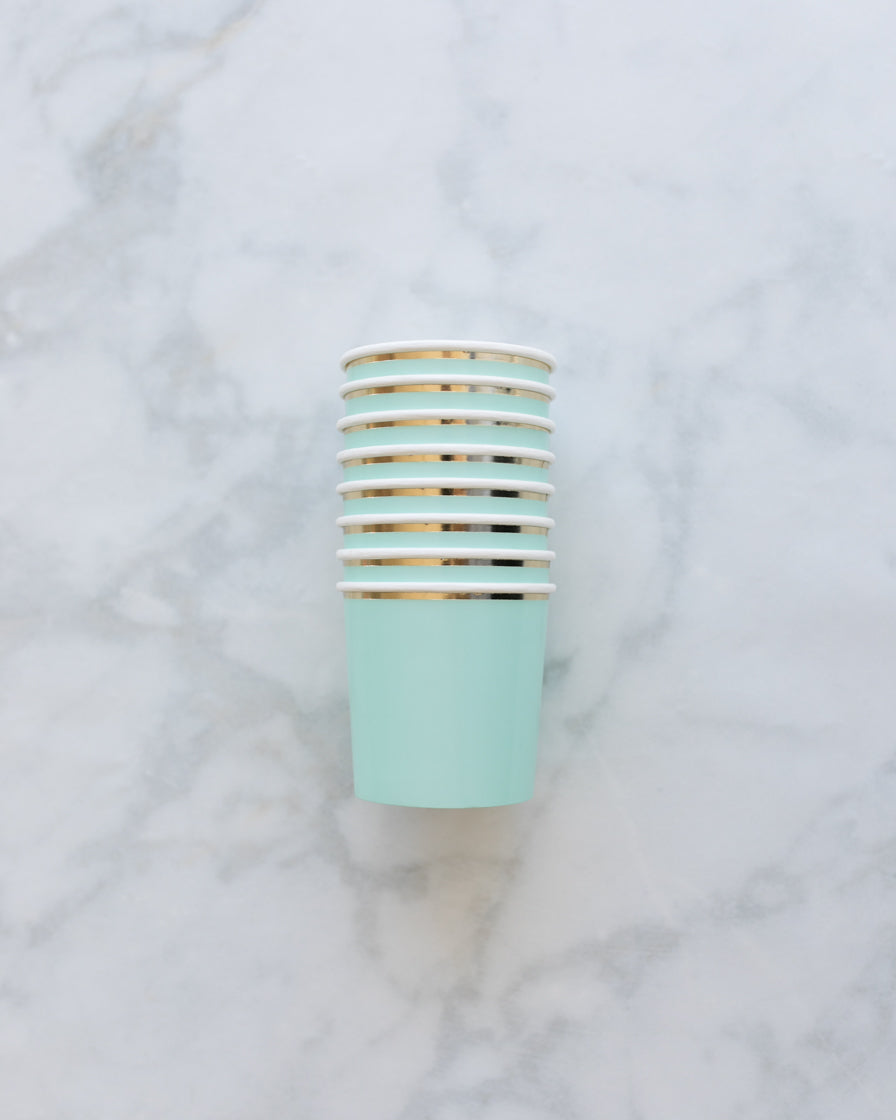 Drinks served in these stylish mint tumbler cups will be bound to impress your guests. Made from high-quality paper with a shiny gold border and superb gloss finish, suitable for hot or cold drinks.