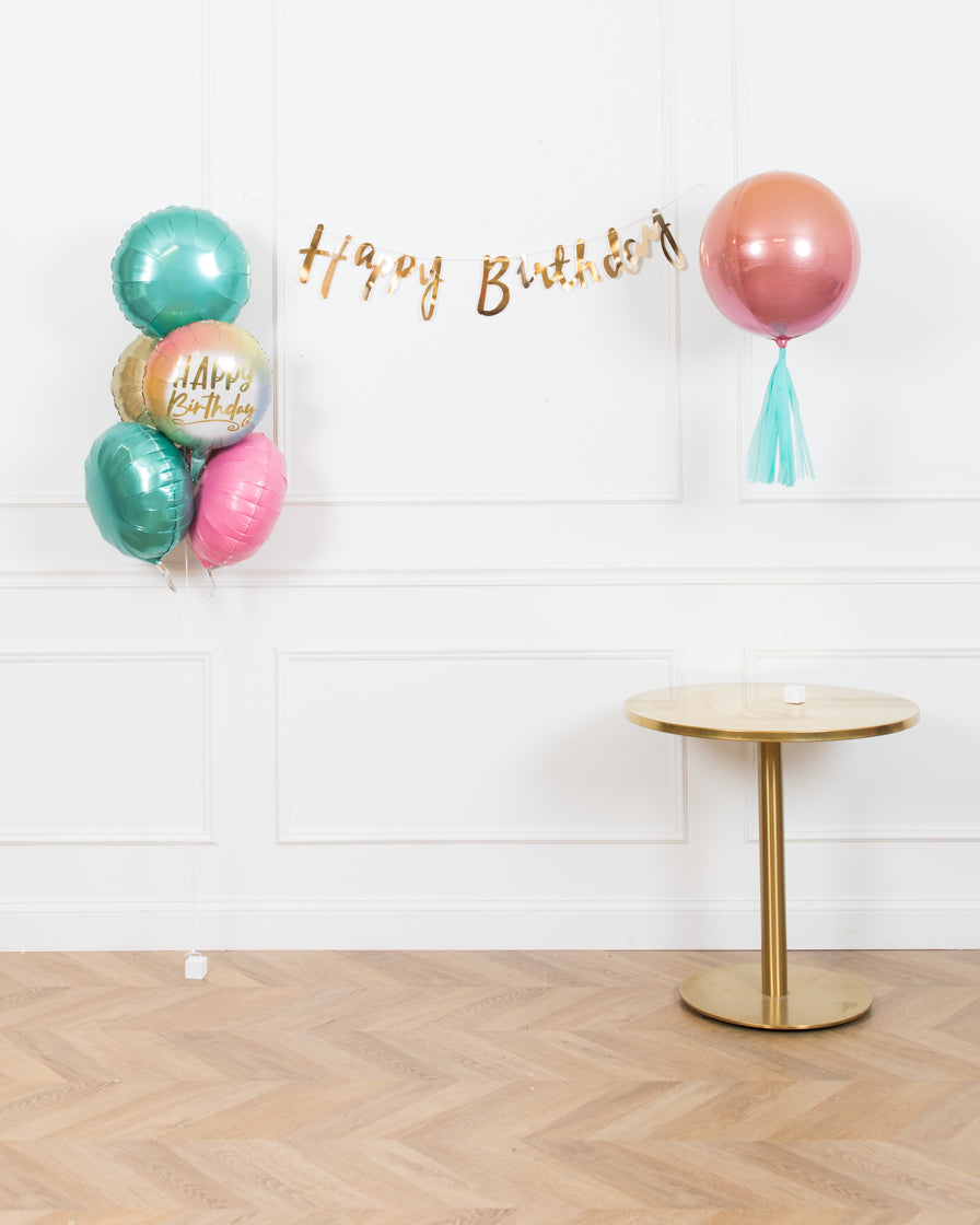 Bring your office or staff birthday celebration to life with our all foil balloon set. This includes a foil balloon bouquet and orb centerpiece. With a paper happy birthday banner, any office space can become an instant celebration.