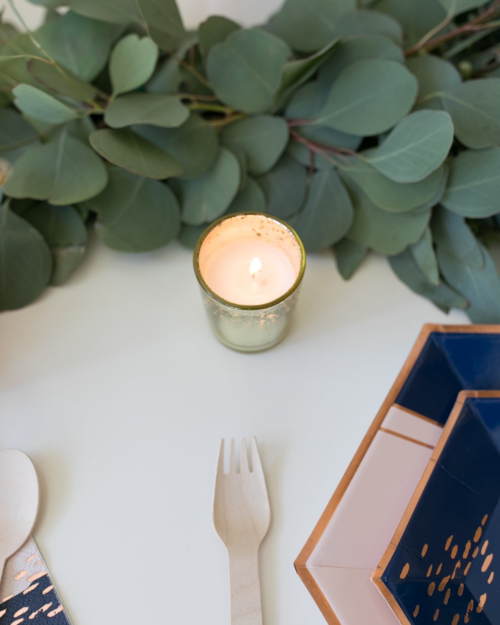 Add a little touch of glam with this set gold mercury votives.