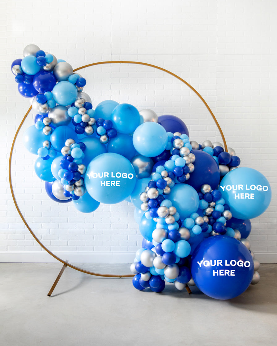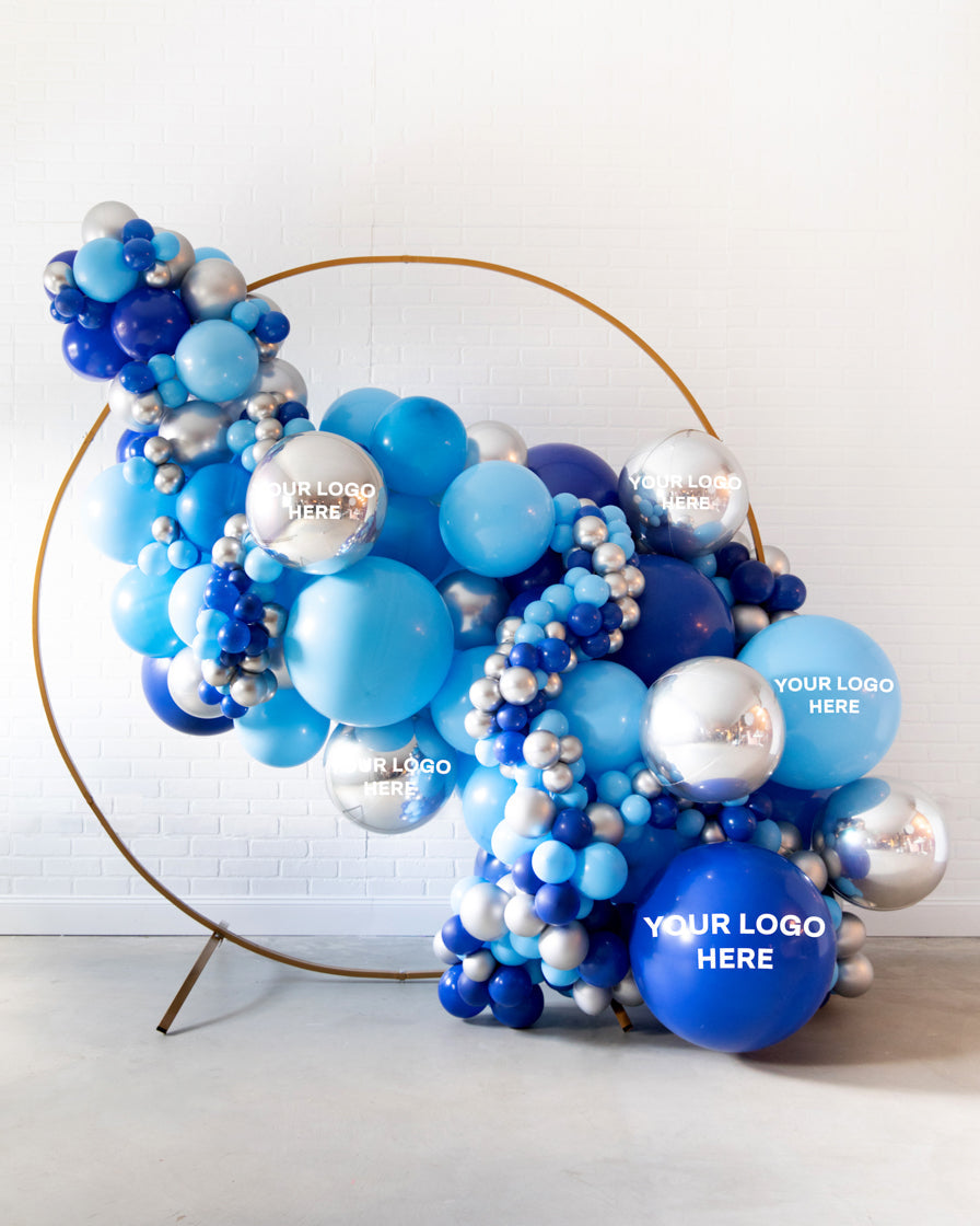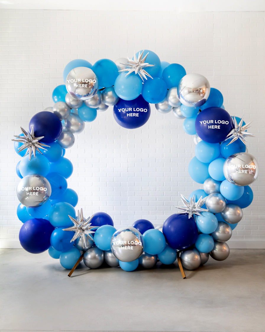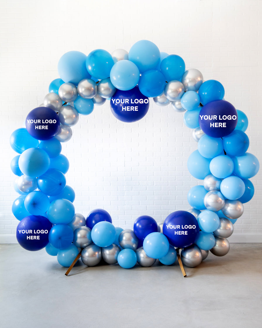 Create a show stopping event with our organic balloon backdrop on gold circle frame. This unique design allows for plenty of photo worthy moments at your corporate celebration.