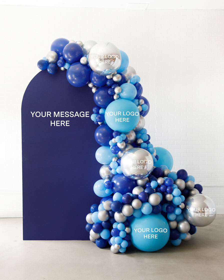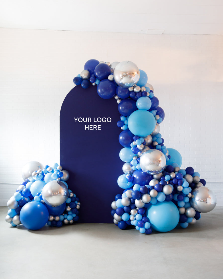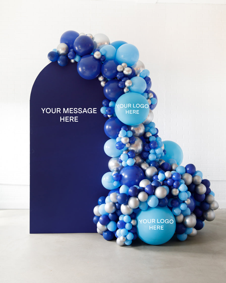 Stand out in style with this panel and balloon garland design. This includes a 7ft panel backdrop with organic balloon garland to match. Pick your brand colors and add your logo to the panel or balloons for an extra presence.