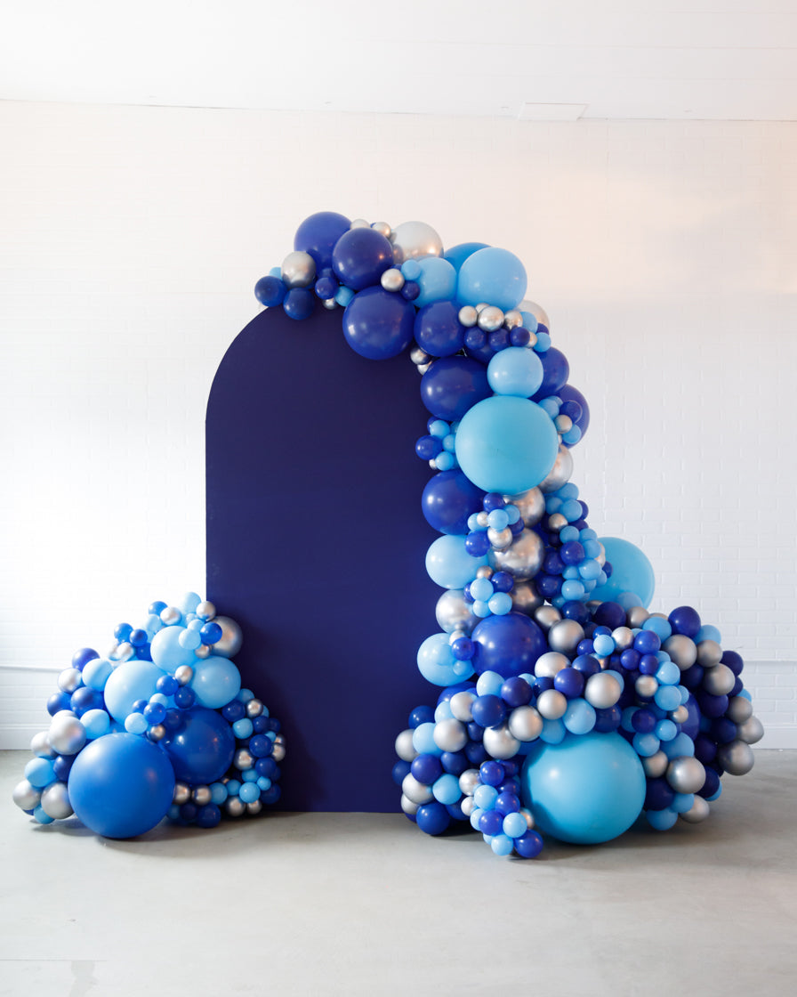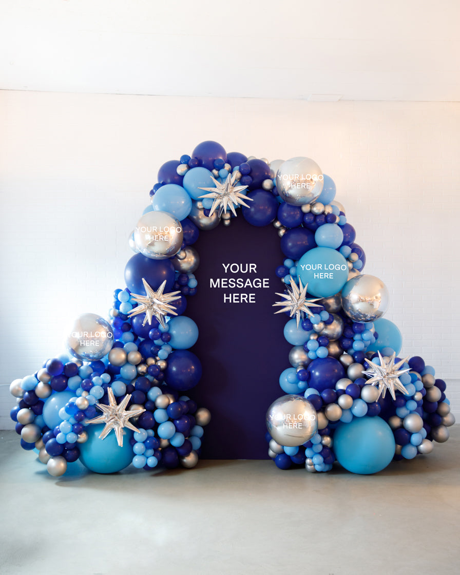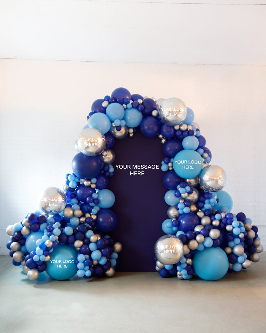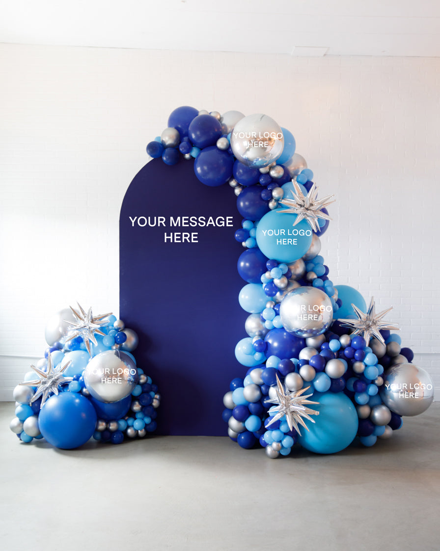 Stand out in style with this panel and balloon garland design. This includes a 7ft panel backdrop with organic balloon garland to match. Pick your brand colors and add your logo to the panel or balloons for an extra presence.