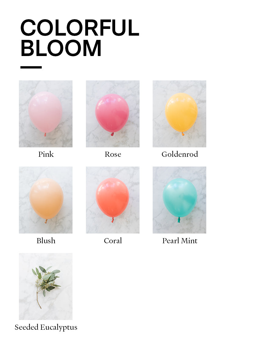 Balloon - goldenrod, blush coral, coral, rose, wintergreen, caribbean blue, tropical teal