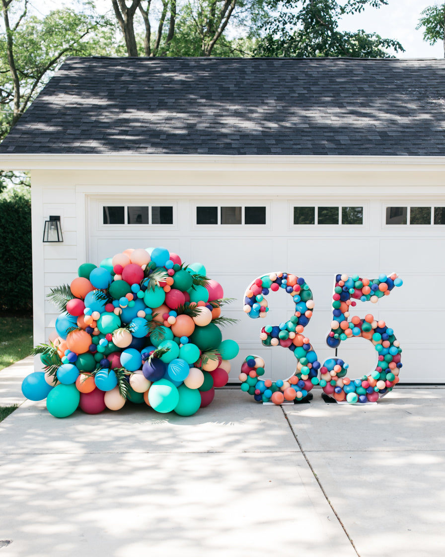 Make a statement with this full instant party mix. Perfect as a photo backdrop, place in the front lawn, backyard, patio or garden space. Bold colors and fresh greenery create the perfect birthday bash.