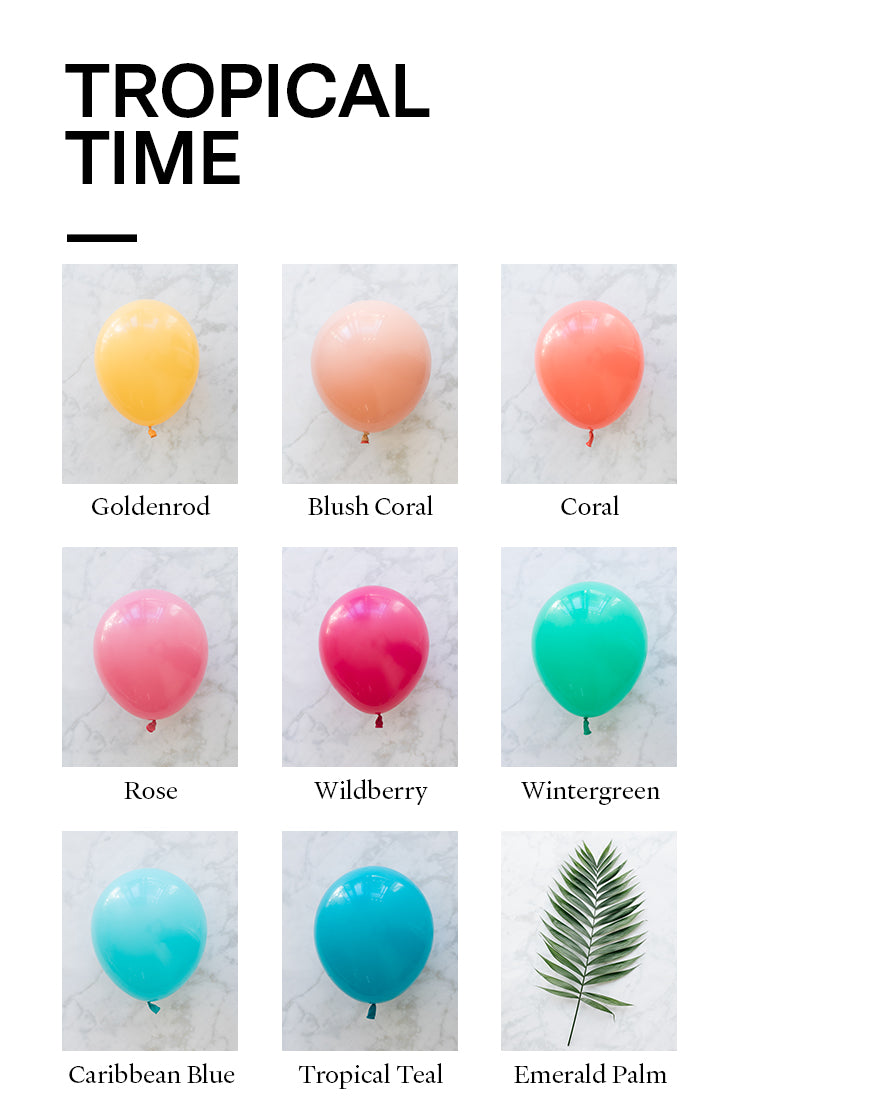 Balloon - goldenrod, blush coral, coral, rose, wintergreen, caribbean blue, tropical teal