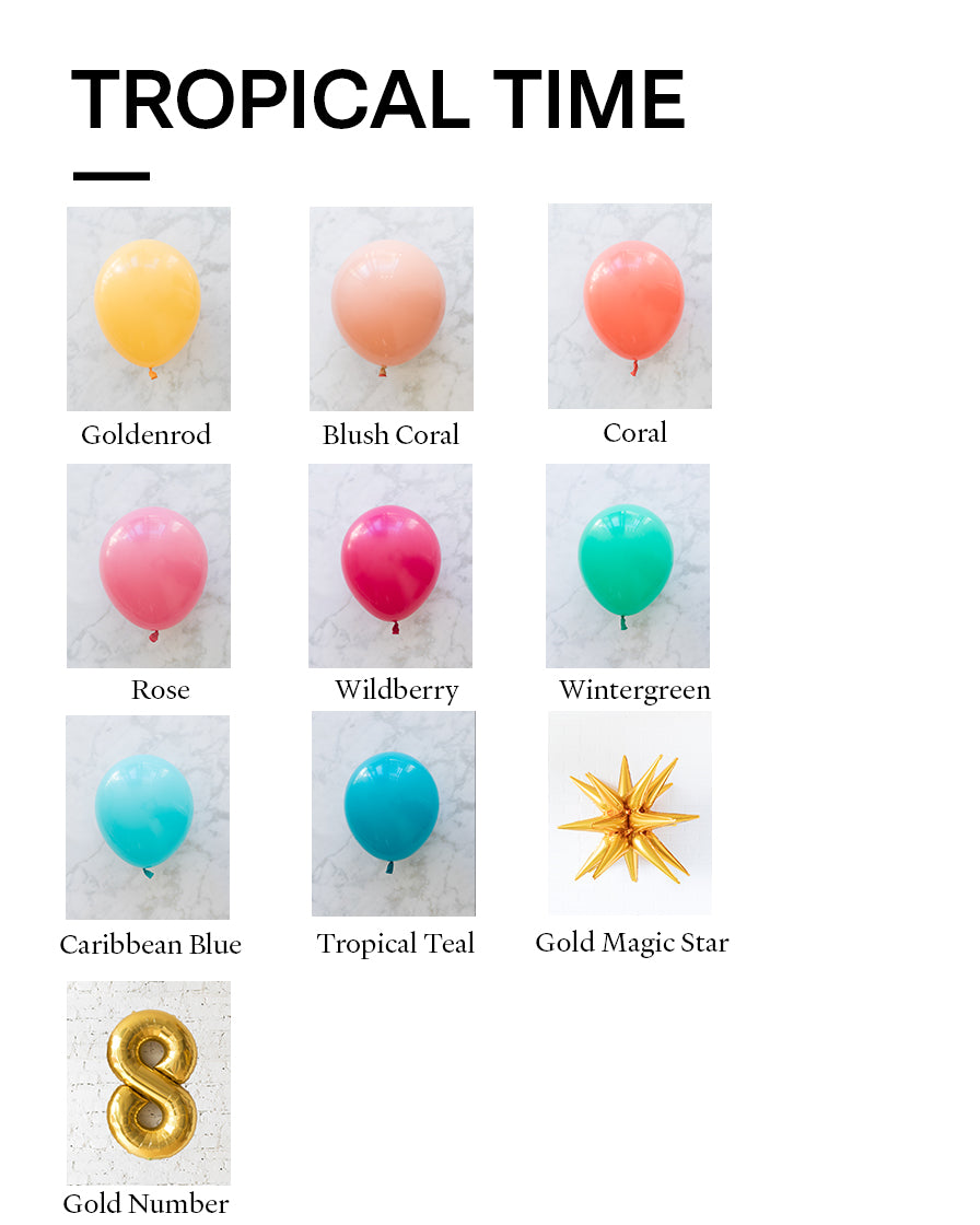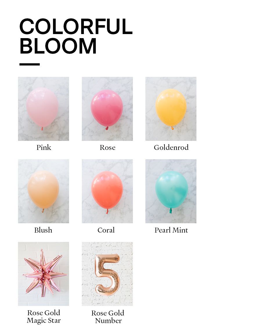 Balloon - goldenrod, blush coral, coral, rose, wintergreen, caribbean blue, tropical teal
