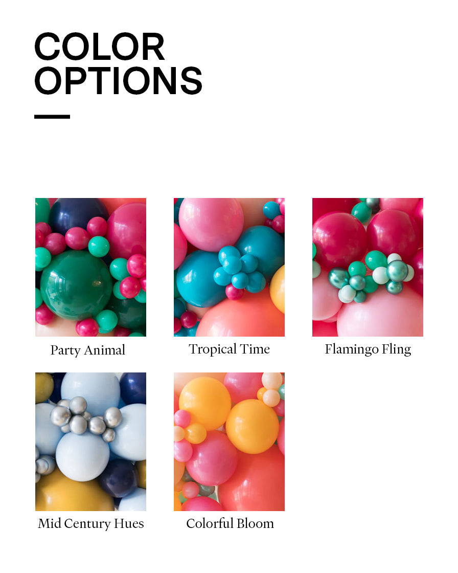 - Outdoor installations heighten the risk of damage to both the display and balloons. We are not responsible for any damages that occur and cannot provide replacements, refunds, or credits.