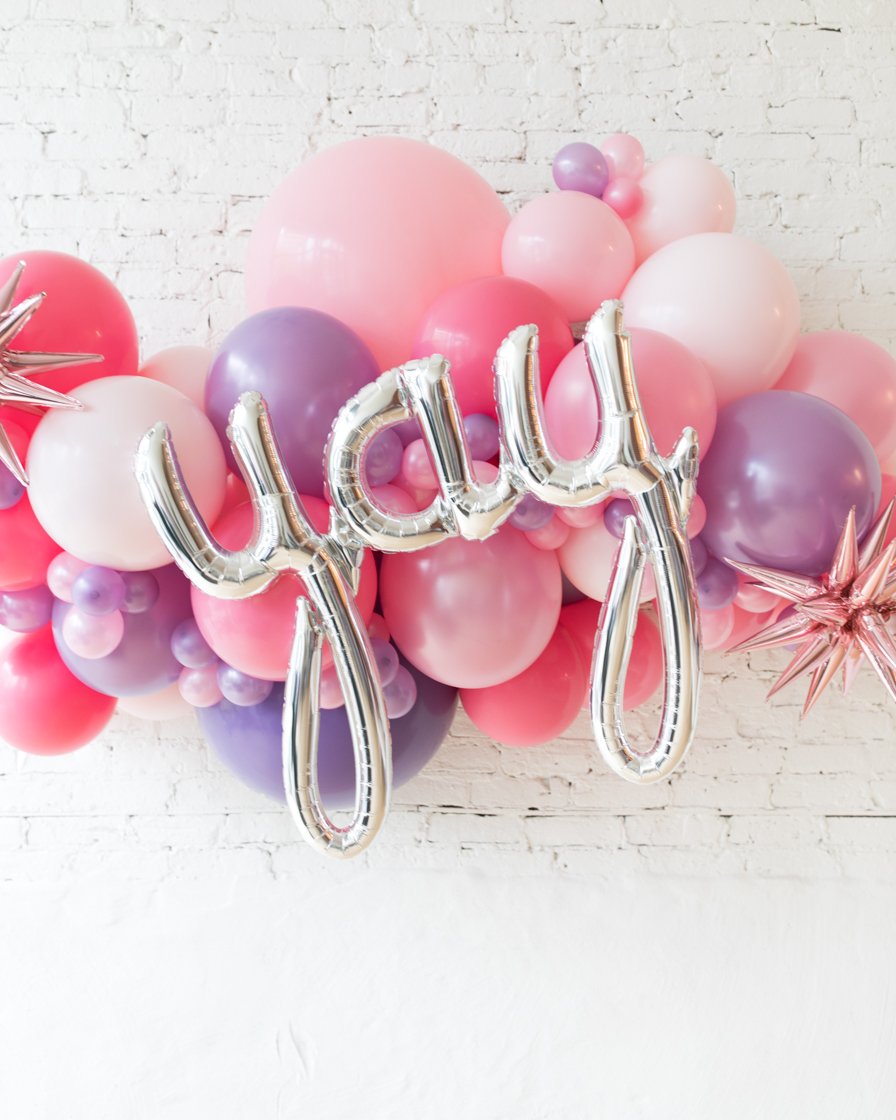 Spread some cheer with this eye-catching balloon garland. A great way to celebrate an important occasion, this piece can be installed on a fence, staircase or porch. Complete the look with giant balloons or balloon columns from this same collection.