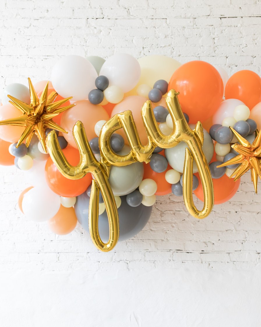 Spread some cheer with this eye-catching balloon garland. A great way to celebrate an important occasion, this piece can be installed on a fence, staircase or porch. Complete the look with giant balloons or balloon columns from this same collection.