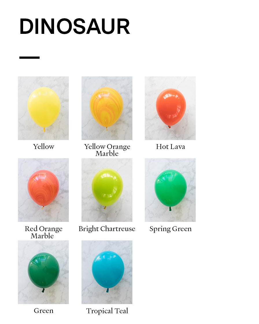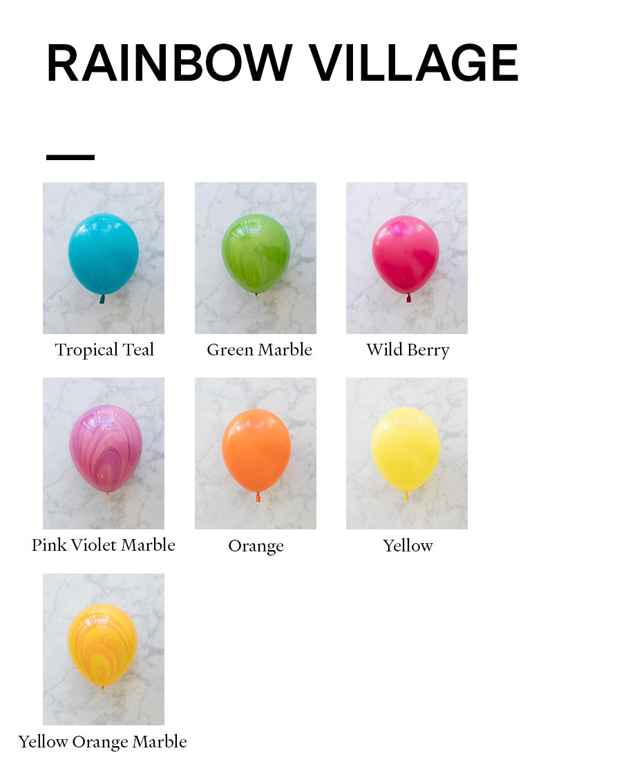 Balloon - yellow, yellow orange marble, hot lava, red orange marble, bright chartreuse, spring green, green, tropical teal