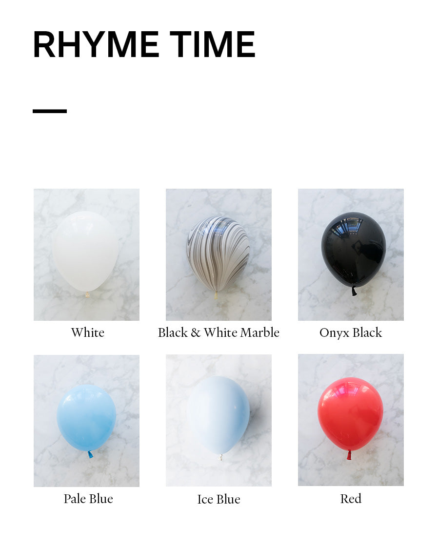 Balloon - red, white & black marble, black, pale blue, white, ice blue